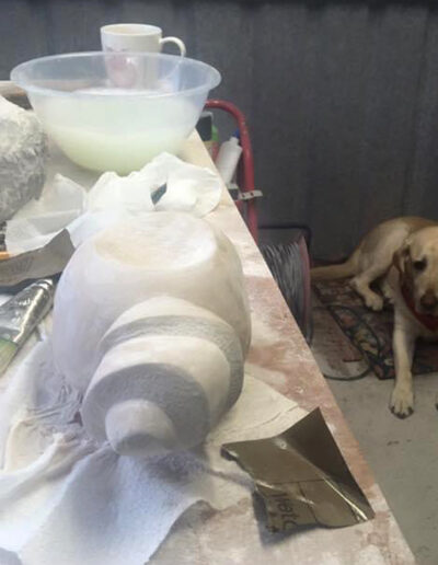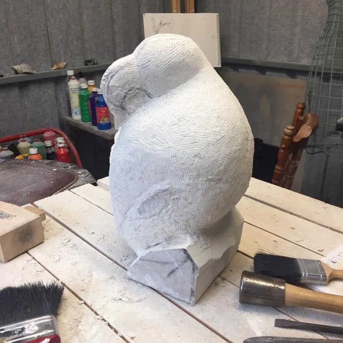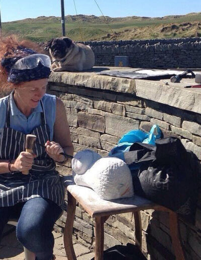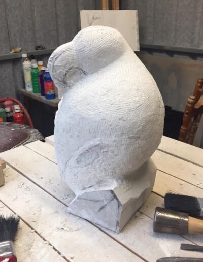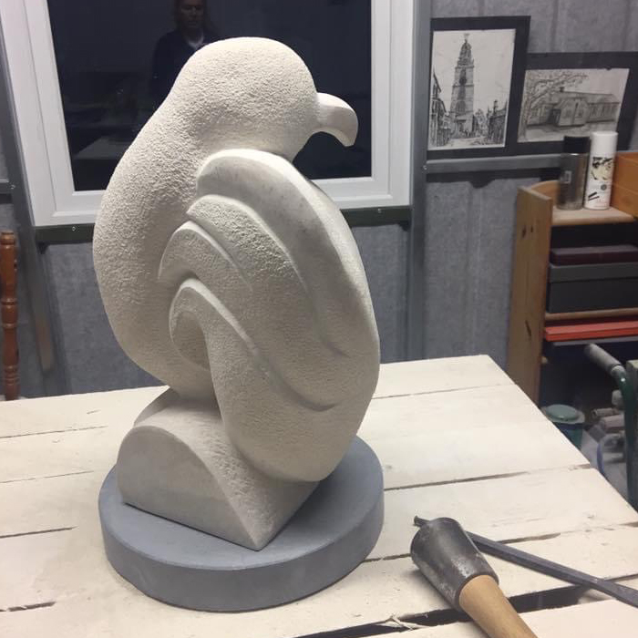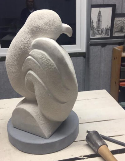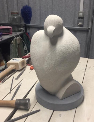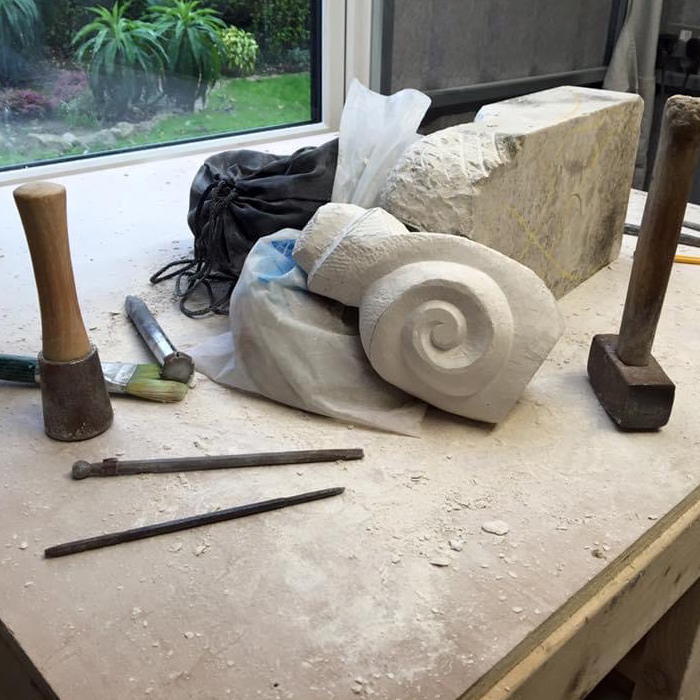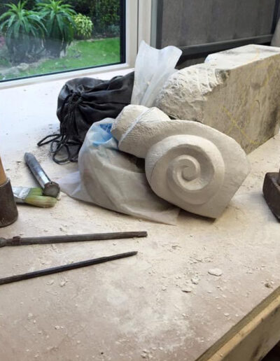 Once the rough form begins to emerge I start working over the surface with a claw chisel. This is a slow process but rewarding. You have to be patient as the beauty of the stone often dictates the direction you are going in.